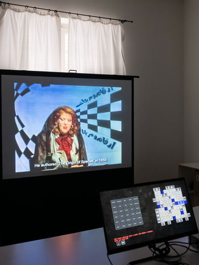 “Numbers and Squares” (2023–2025): an interactive installation reactivating a 1990s home-recorded game show through touch, archive, and video.